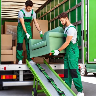 تحميل وتنزيل الأثاث الثقيل باستخدام الأوناش والمعدات الحديثة.