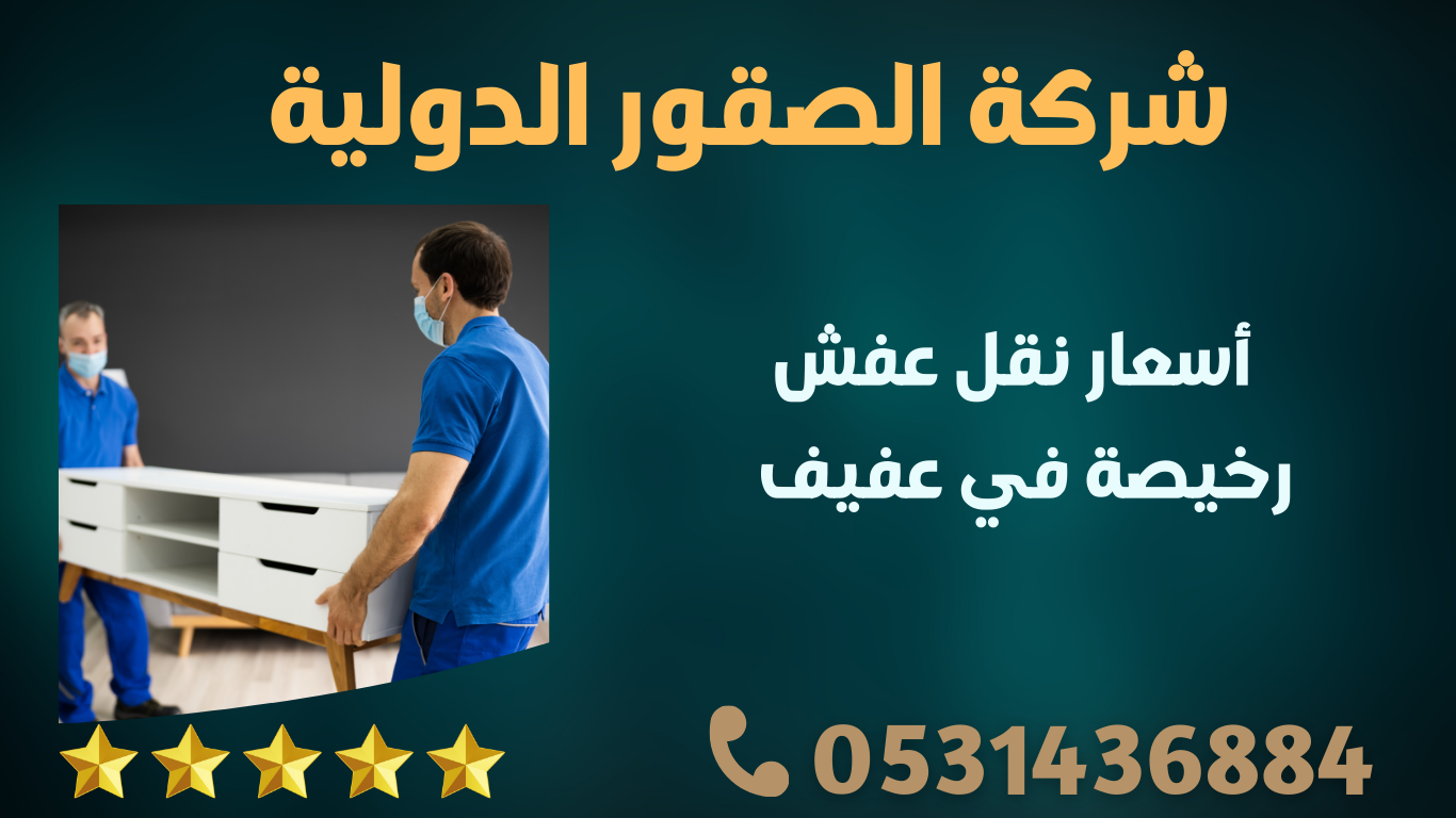 إذا كنت في عفيف وتبحث عن نقل عفش بأسعار رخيصة وجودة عالية، لا تتردد في الاتصال بنا على 0531436884. نحن في الصقور الدولية نقدم لك أفضل خدمة نقل عفش بأقل الأسعار، مع ضمان سرعة التنفيذ والحفاظ على أمان الأثاث. نحن هنا لجعل عملية نقل الأثاث سهلة وآمنة لك