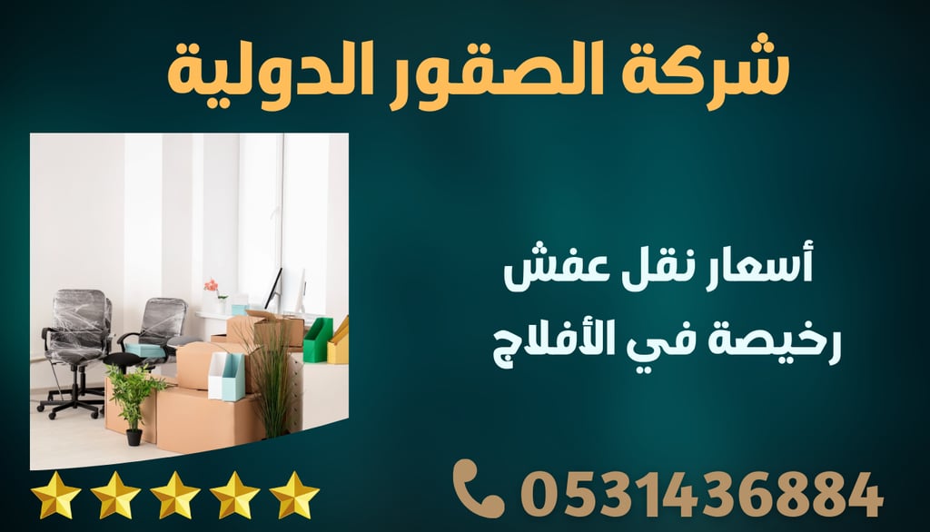 إذا كنت بحاجة إلى نقل عفش في الأفلاج بأسعار رخيصة وجودة عالية، كل ما عليك فعله هو الاتصال بـ شركة الصقور الدولية على الرقم 0531436884. نحن نقدم لك أفضل العروض ونعدك بتجربة نقل خالية من المشاكل