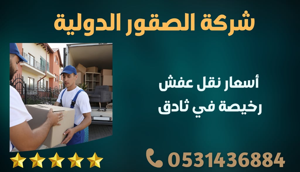 إذا كنت تبحث عن أسعار نقل عفش رخيصة في ثادق، فشركة الصقور الدولية هي الخيار الأمثل لك. نحن نقدم خدمات نقل عفش عالية الجودة بأسعار تنافسية، مما يضمن لك تقديم الخدمة بأعلى مستوى من الكفاءة والاحترافية دون التأثير على ميزانيتك.