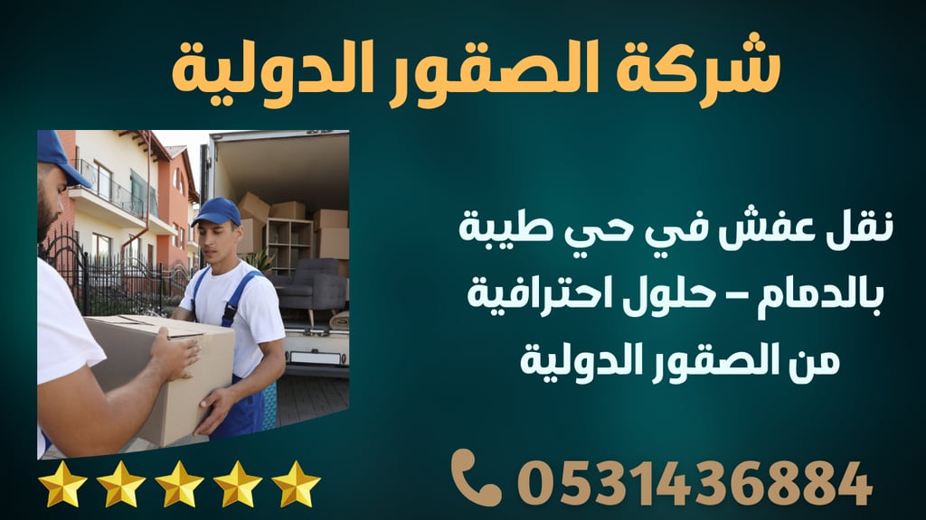 إذا كنت تبحث عن أفضل شركة نقل عفش في حي طيبة بالدمام، فإن الصقور الدولية توفر لك خدمات نقل، فك، تركيب، وتغليف بأعلى معايير الجودة. نضمن لك نقل العفش بأمان تام باستخدام أحدث الأدوات وفريق عمل محترف لضمان عدم تعرض ممتلكاتك لأي ضرر.