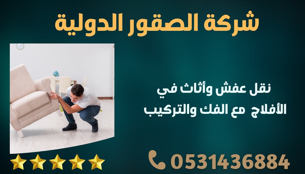 إذا كنت بحاجة إلى نقل أثاث في الأفلاج مع الفك والتركيب بأعلى معايير الجودة والأمان، فلا تتردد في الاتصال بـ شركة الصقور الدولية على الرقم 0531436884. نحن هنا لضمان راحتك وتقديم خدمة متميزة تلبي كافة احتياجاتك.