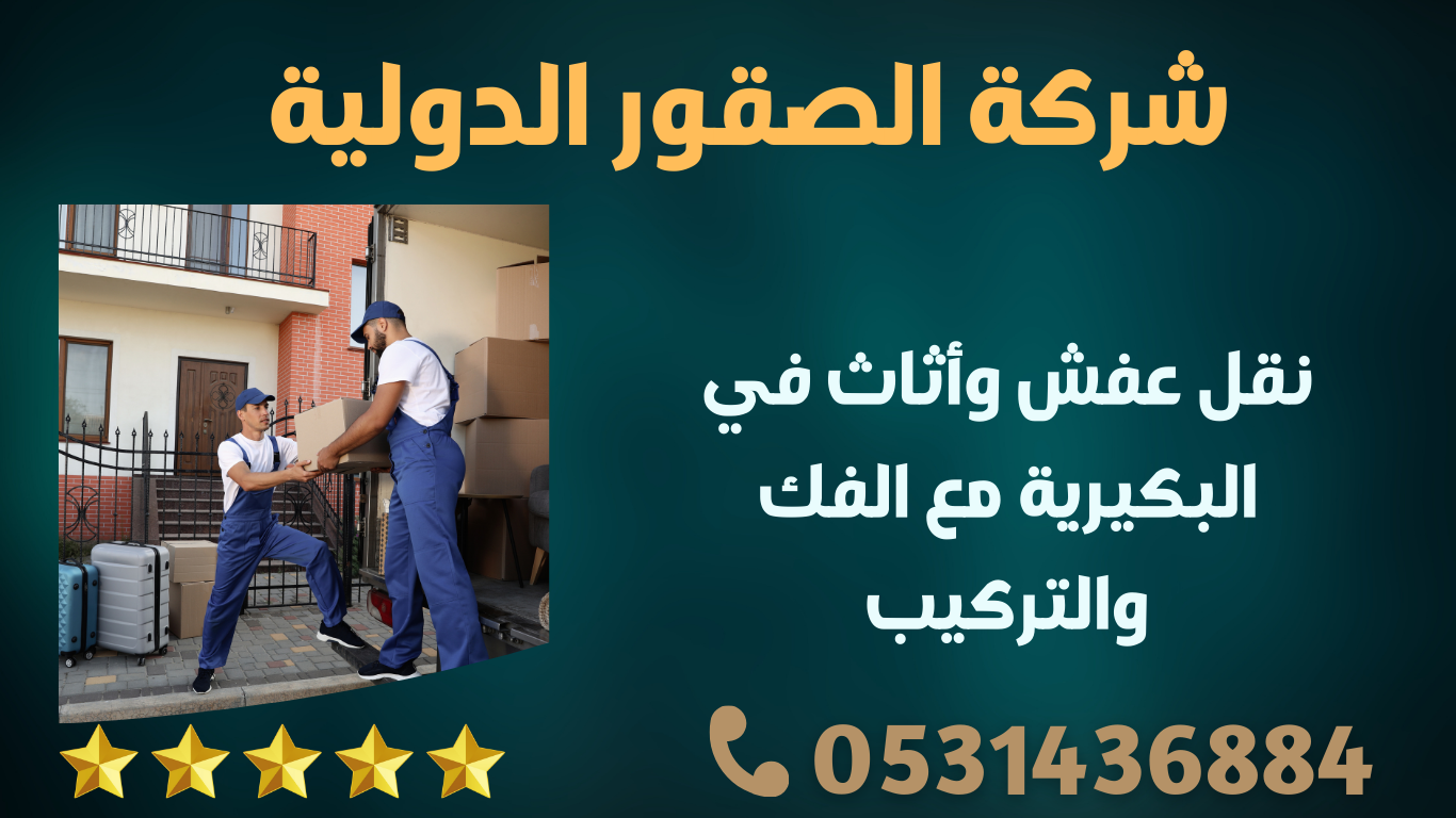 للحصول على خدمة نقل عفش وأثاث عالية الجودة مع الفك والتركيب في البكيرية، لا تتردد في الاتصال بـ الصقور الدولية عبر الرقم 0531436884. نحن هنا لضمان راحتك وتلبية احتياجاتك بأعلى مستوى من الجودة والاحتراف.