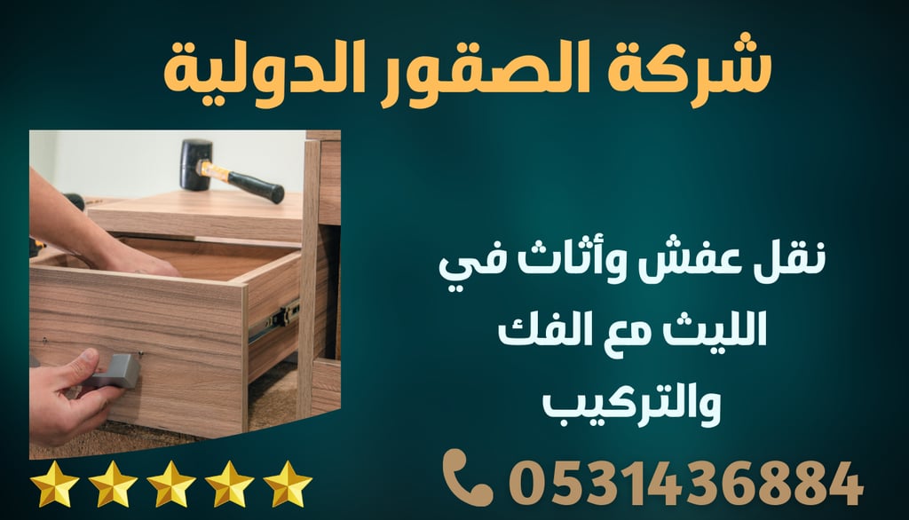 إذا كنت بحاجة إلى نقل العفش والأثاث في الليث مع الفك والتركيب، الصقور الدولية هي الخيار الأمثل. اتصل بنا اليوم على 0531436884 لطلب الخدمة. فريقنا مستعد دائمًا لتقديم أفضل الحلول لتلبية احتياجاتك بأعلى مستوى من الكفاءة والاحترافية.