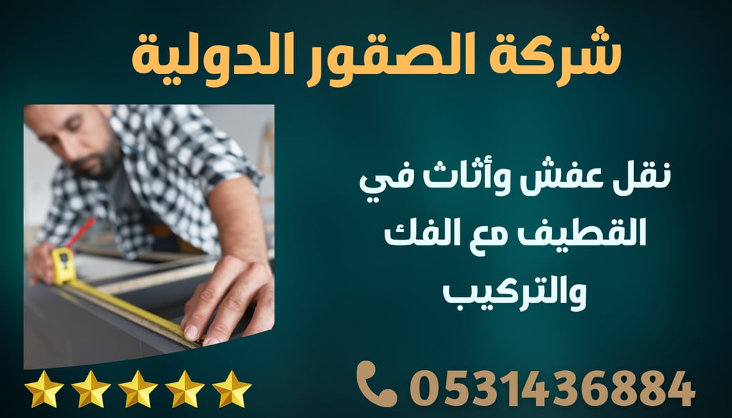 نحن في شركة الصقور الدولية نقدم لك أفضل الخدمات بأعلى مستويات الجودة والاحترافية. لا تتردد في الاتصال بنا للحصول على أفضل خدمة نقل أثاث مع الفك والتركيب في القطيف.