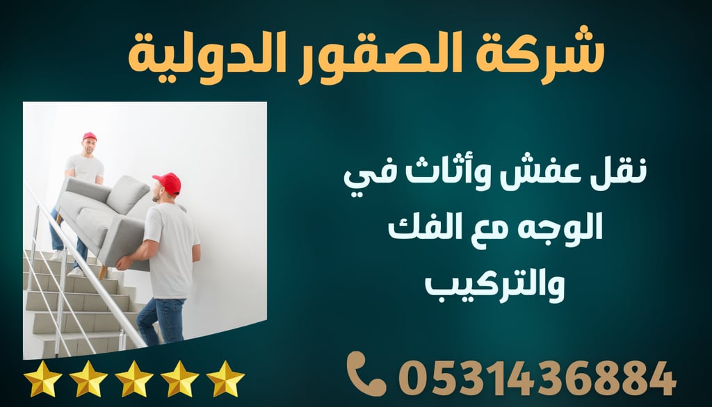 إذا كنت بحاجة إلى نقل عفش وأثاث في الوجه مع الفك والتركيب، فإن الصقور الدولية هي الخيار المثالي لك. نحن نلتزم بتقديم خدمة نقل آمنة وسريعة وبأسعار مناسبة.