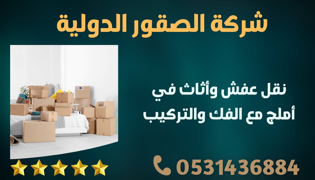 نقل عفش وأثاث في أملج مع الفك والتركيب – الصقور الدولية | 0531436884 لو بتدور على شركة تنقل لك العفش في أملج بكل أمان وسلاسة، يبقى شركة الصقور الدولية هي اختيارك الأول! ✅ فك وتركيب الأثاث باحتراف ✅ نقل آمن وسريع ✅ تغليف شامل يحافظ على كل قطعة ✅ فريق مدرّب وأدوات حديثة اتصل الآن على 0531436884 وخلي الانتقال على الصقور، وانت ارتاح! الصقور الدولية – نوصّل عفشك بأمان.