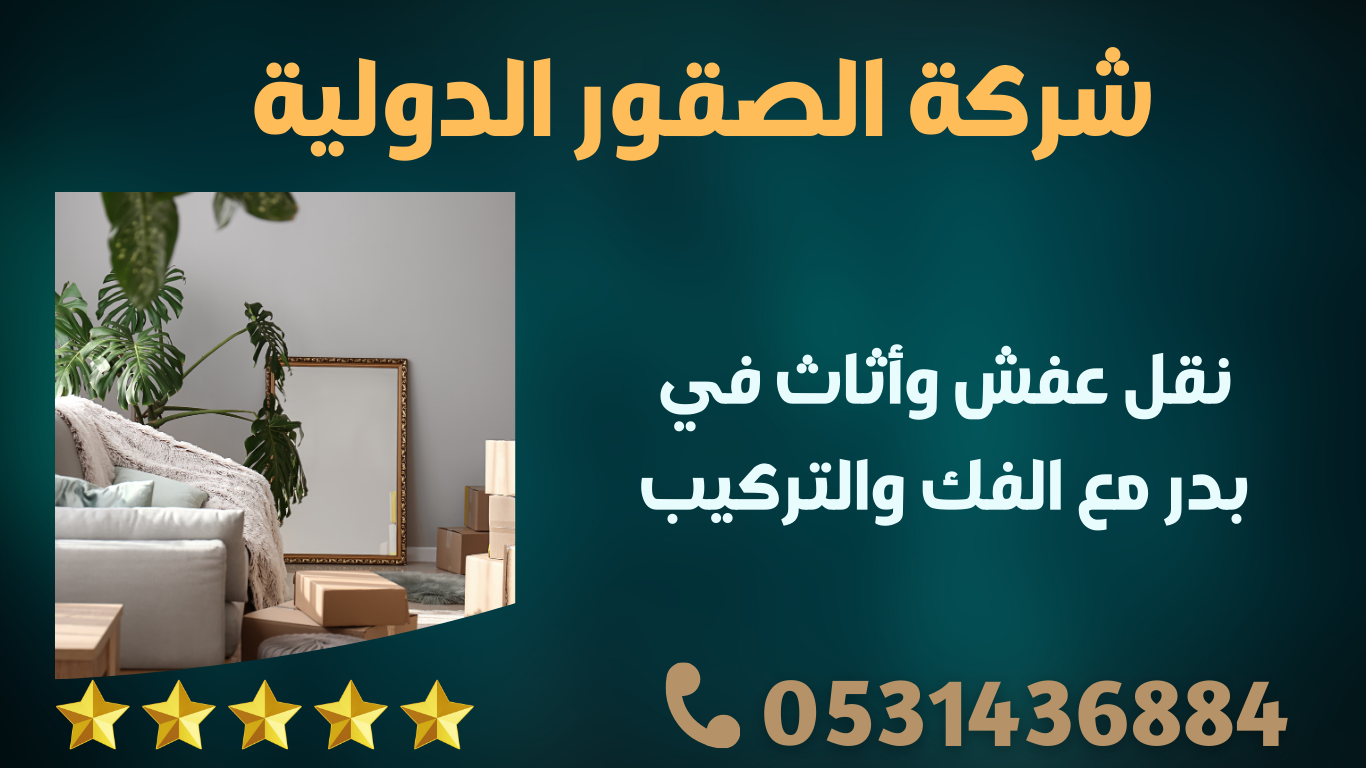 إذا كنت بحاجة إلى نقل أثاث مع الفك والتركيب في بدر، لا تتردد في التواصل مع الصقور الدولية عبر الرقم 0531436884. نحن هنا لضمان أن عملية نقل الأثاث تتم بكل سهولة وأمان، وبأفضل الأسعار.