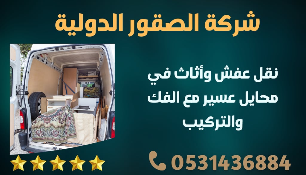 شركة الصقور الدولية تقدم لك أفضل الحلول لنقل العفش والأثاث في محايل عسير، حيث نعمل على توفير خدمات النقل مع الفك والتركيب بأعلى مستوى من الاحترافية والجودة. سواء كنت بحاجة إلى نقل أثاث منزلي، مكتبي، أو حتى قطع أثاث فاخرة، فإننا هنا لنقدم لك خدماتنا بكل اهتمام.