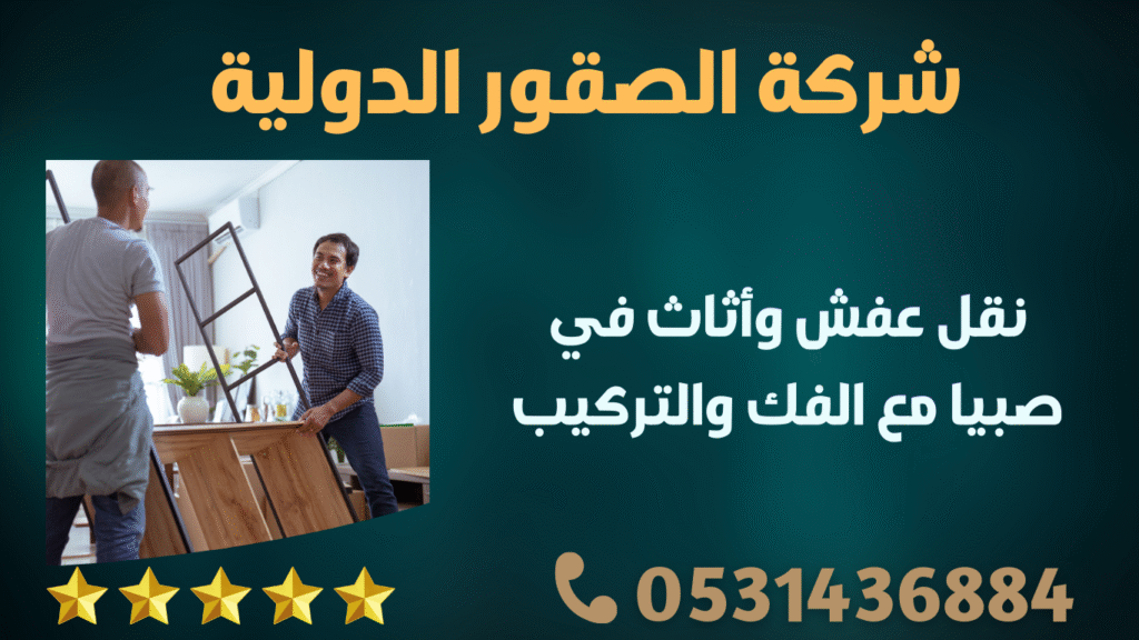 الصقور الدولية تقدم لك خدمة نقل عفش وأثاث شاملة مع الفك والتركيب بأعلى جودة وأفضل أسعار في صبيا، مع ضمان الأمان والسرعة في التنفيذ.