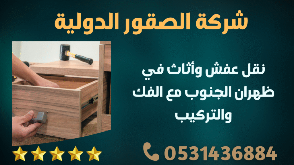 إذا كنت بحاجة إلى نقل الأثاث في ظهران الجنوب مع الفك والتركيب، لا تتردد في الاتصال بـ الصقور الدولية على الرقم 0580471180. نحن هنا لخدمتك وتقديم أفضل الخدمات بأسعار معقولة وجودة عالية.