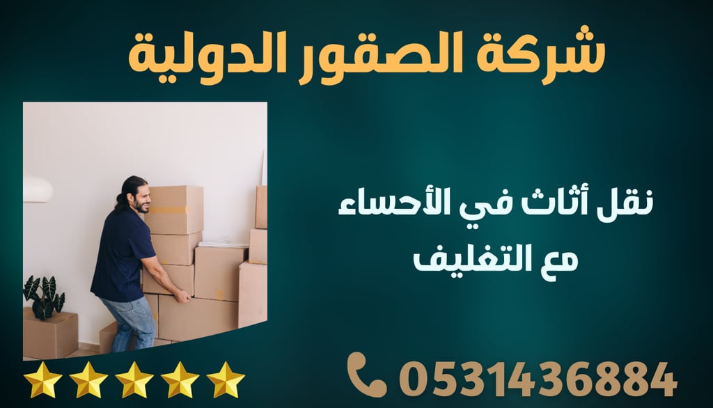 نقل أثاث في الأحساء مع التغليف – الصقور الدولية | 0531436884 إذا كنت بحاجة إلى نقل أثاثك في الأحساء مع ضمان حماية كاملة له، فإن شركة الصقور الدولية هي الخيار المثالي. نحن نقدم خدمة نقل الأثاث مع التغليف بأعلى معايير الجودة لضمان الحفاظ على أثاثك من التلف. سواء كنت تنقل داخل الأحساء أو إلى مناطق أخرى، نحن هنا لخدمتك بأعلى مستويات الأمان والدقة. للتواصل وحجز الخدمة، اتصل بنا على 0531436884.