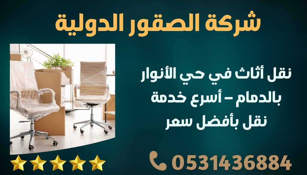 هل تبحث عن شركة نقل عفش موثوقة في حي الأنوار بالدمام توفر لك خدمة سريعة وبأفضل الأسعار؟ الصقور الدولية هي الخيار الأمثل لنقل أثاثك بأمان واحترافية، مع تقديم أحدث تقنيات التغليف والنقل للحفاظ على ممتلكاتك بحالة ممتازة.