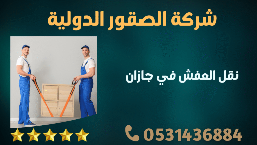 شركة الصقور الدولية لنقل العفش في جازان تقدم لك خدمات نقل أثاث متكاملة واحترافية تلبي جميع احتياجاتك بكل سهولة وأمان. نتميز بفريق عمل متخصص ومدرب على أعلى مستوى في فك وتركيب وتغليف العفش باستخدام أفضل المواد التي تحافظ على سلامة الأثاث أثناء النقل. كما نوفر أسطول سيارات نقل مجهزة لضمان سرعة وكفاءة توصيل الأثاث إلى أي مكان داخل جازان أو خارجها. نلتزم بالمواعيد ونوفر خدماتنا بأسعار تنافسية تناسب جميع العملاء. اتصل الآن على 0598091339 وتمتع بخدمة نقل عفش موثوقة ومتميزة مع الصقور الدولية.