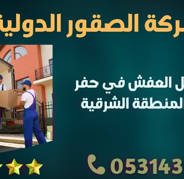 يعمل فريقنا المحترف على ضمان تجربة نقل سهلة وآمنة، مع الالتزام بالمواعيد وأسعار تنافسية تناسب جميع العملاء. تواصل معنا على 0531436884 للاستفادة من أفضل خدمات نقل العفش في حفر الباطن مع الصقور الدولية، حيث نضع راحتك وسلامة أثاثك في المقام الأول.